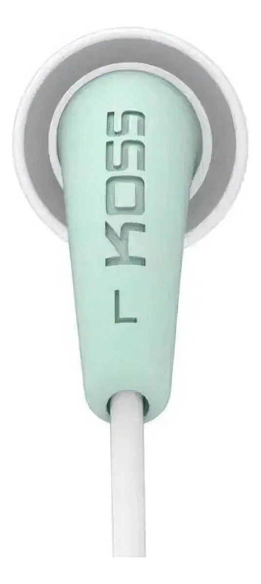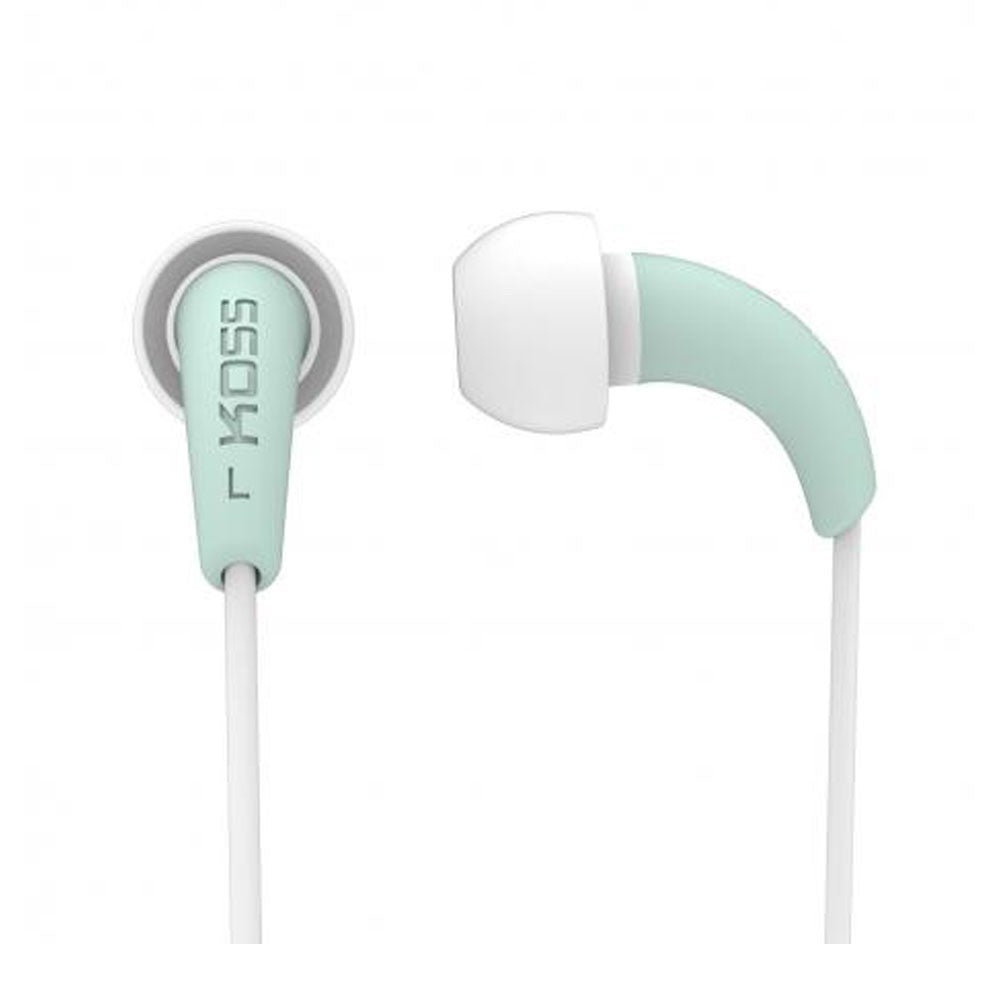 Auriculares Koss KEB32 Mint compatibles con una variedad de dispositivos multimedia. La longitud del cable es de un conector de metal con un diámetro de 3,5 mm es de 1,2 m.Las mangas, que tienen una conexión especial con el cable, están bien fijadas y no se caen durante los movimientos intensos, incluso durante los deportes. El modelo viene con tres pares de almohadillas de silicona elástica para minimizar la penetración del ruido externo.